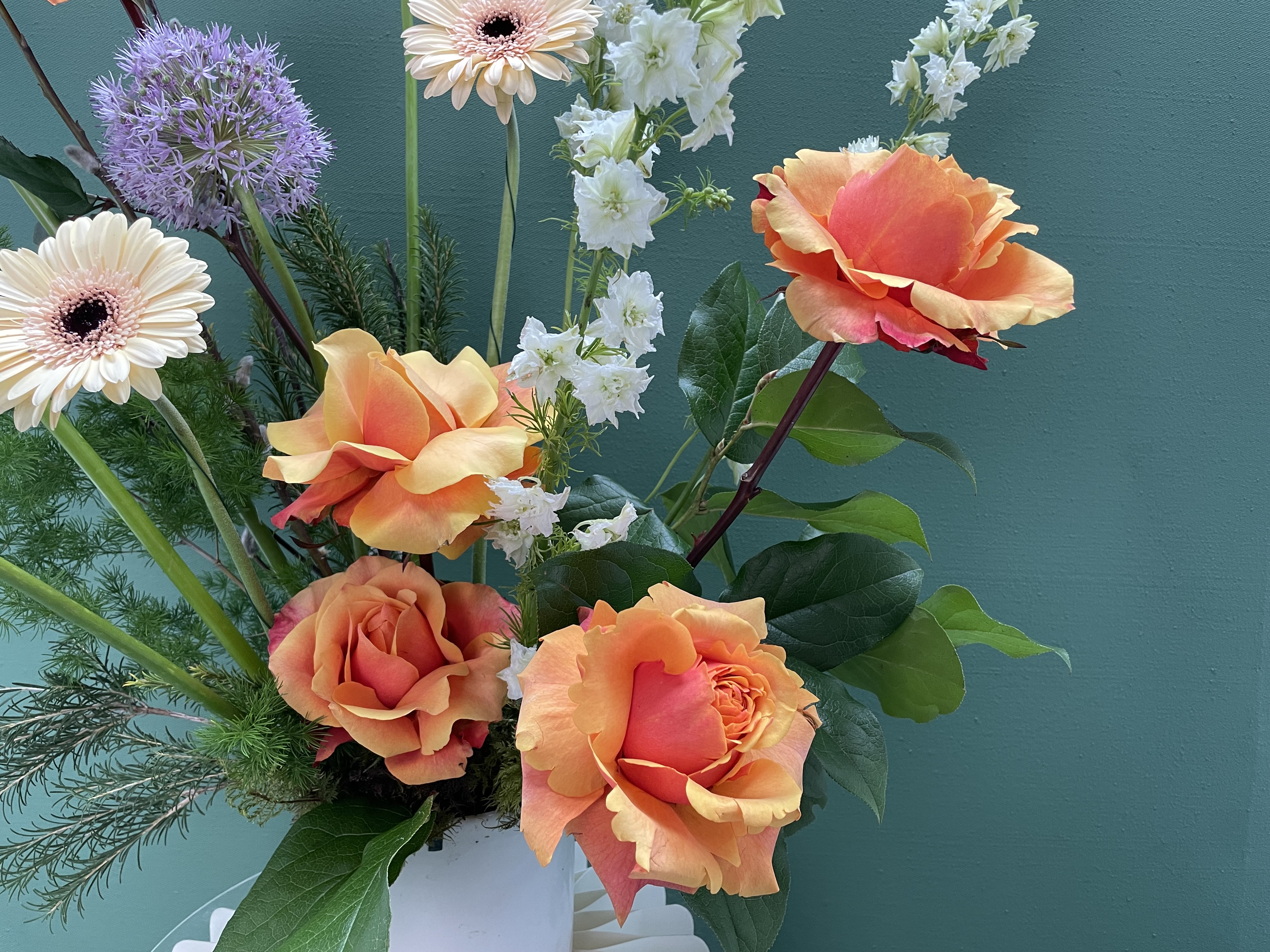 Celebrate Mom’s vibrant spirit with The Fun Mum! This eye-catching arrangement bursts with the energy of bright orange roses and playful purple tones, all beautifully displayed in a chic ceramic container. Perfect for the mom who lights up every room, this bouquet is a joyful statement of love and appreciation. Whether for Mother’s Day or just because, let The Fun Mum bring a smile to her face and a splash of color to her space!